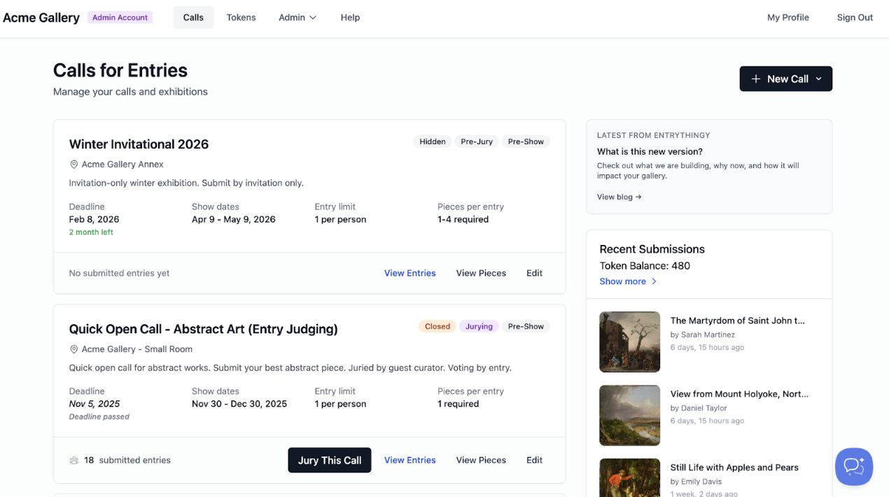EntryThingy is trusted by more than 2,500 galleries and 166,000+ artists, and it’s built specifically for juried calls, gallery submissions, and exhibition applications. And now there is a new launch of the platform!